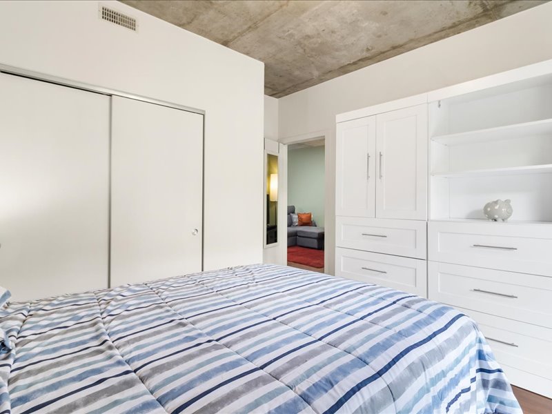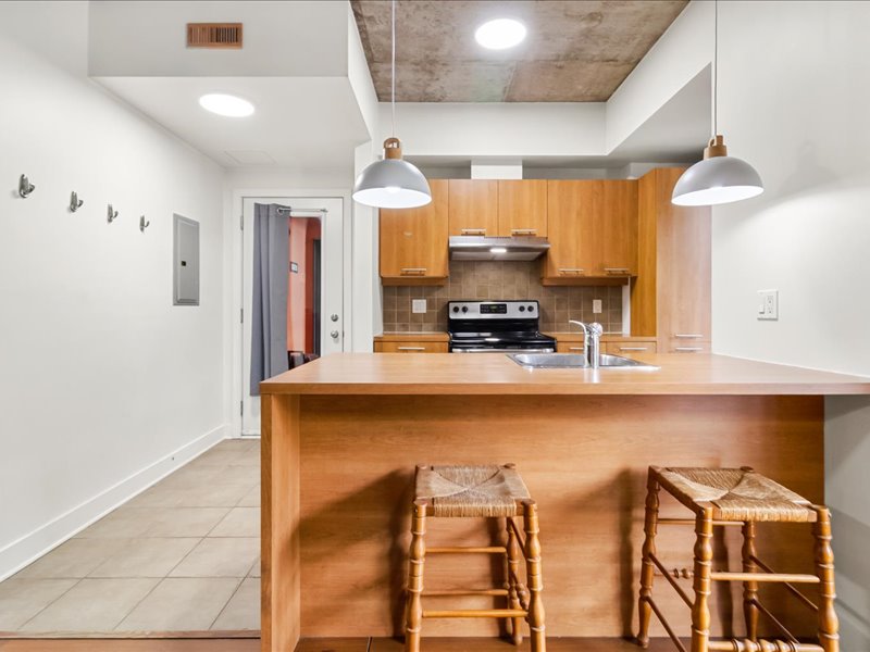 Plafonds en béton de 9 pieds, apportant une belle sensation d’espace et un style industriel moderne,