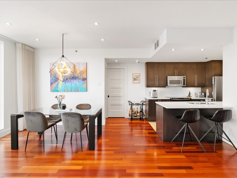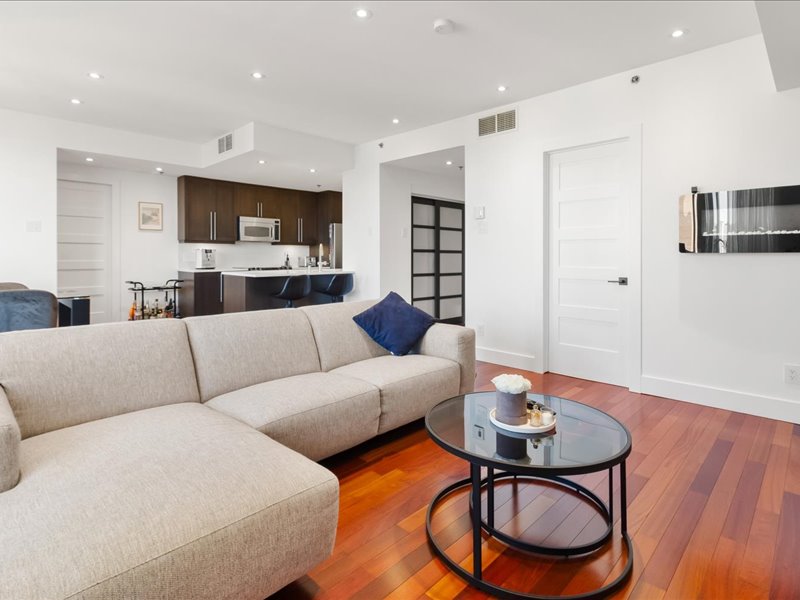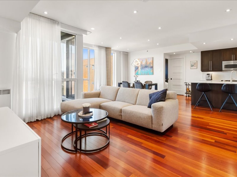 Découvrez ce magnifique condo de 1033 pi² qui marie à la perfection élégance et fonctionnalité. Dès l’entrée, vous serez séduit par son vaste espace à aire ouverte. Le salon, baigné de lumière naturelle grâce à de grandes fenêtres, offre une atmosphère accueillante. La cuisine moderne et bien entretenue combine design et praticité, et s’ouvre sur une salle à manger conviviale. L’unité propose également deux chambres spacieuses et bien pensées.
