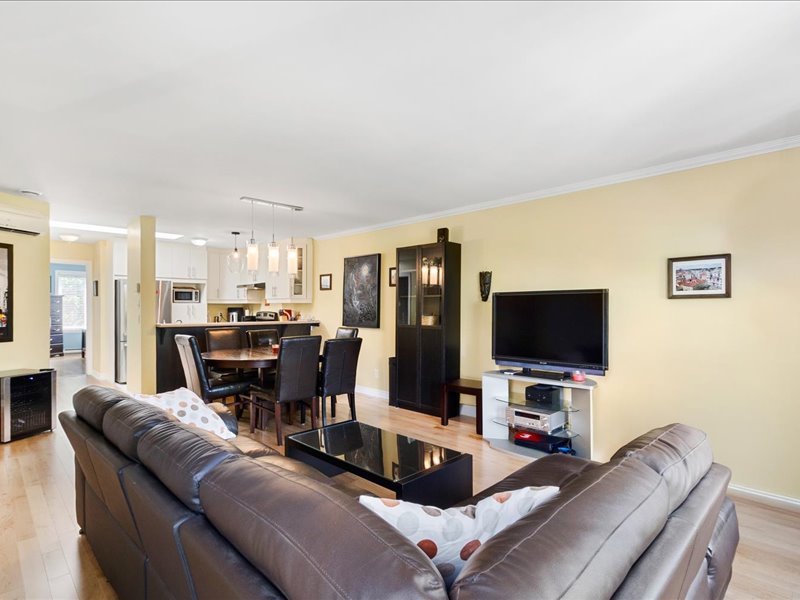Le salon et la salle à manger à aire ouverte profitent d’une abondante lumière naturelle, créant une ambiance conviviale et chaleureuse au quotidien.