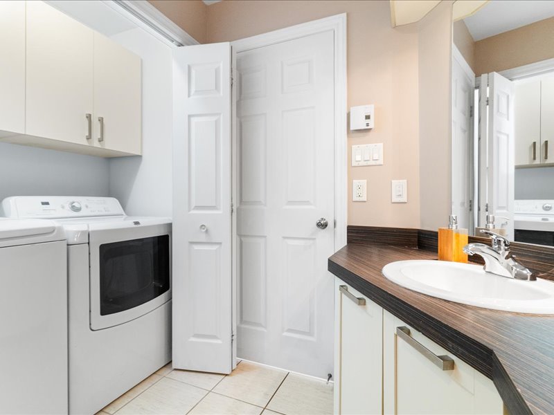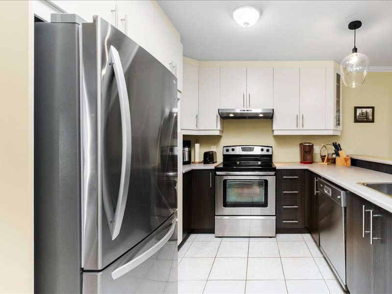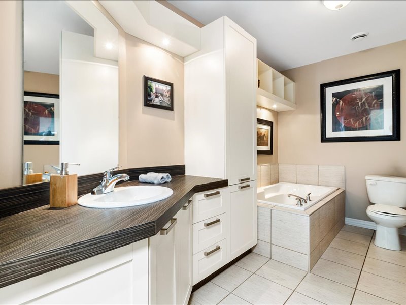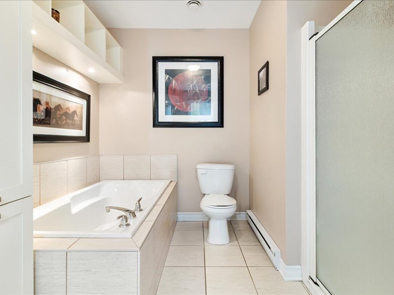 Le condo propose deux chambres spacieuses, chacune offrant un bon espace de rangement. La salle de bain, quant à elle, est équipée d’une baignoire et d’une douche indépendante, pour un maximum de confort.