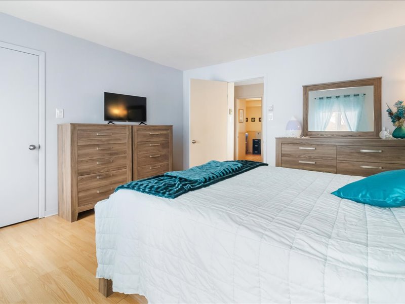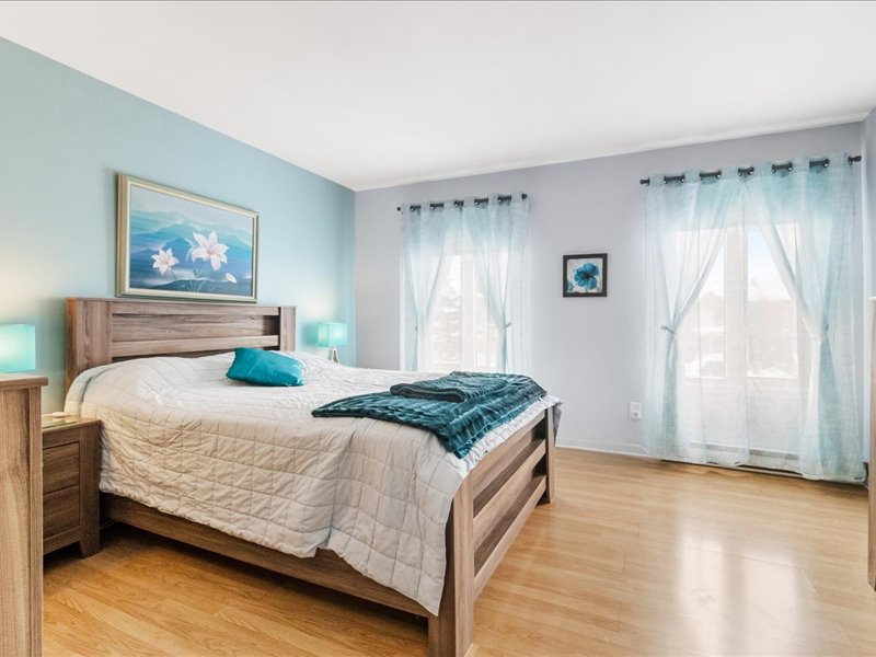 À l’étage, trois chambres de très bonnes dimensions assurent un espace idéal pour toute la famille, dont une chambre principale avec walk-in. Une salle de bains complète et une salle d’eau viennent bonifier le confort quotidien.