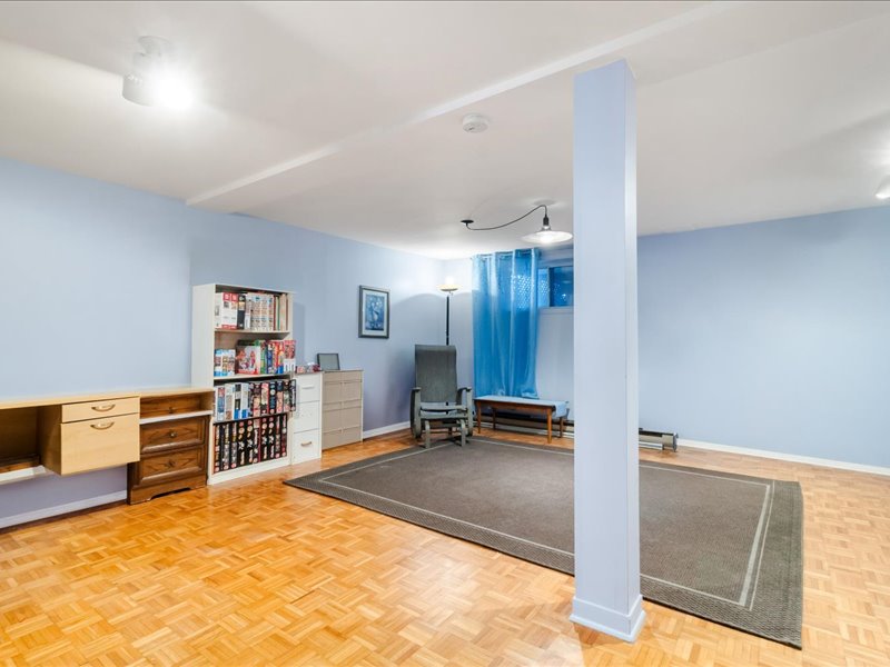 Le sous-sol entièrement aménagé offre une grande salle familiale polyvalente pouvant accueillir un bureau à domicile, une salle de jeux ou un cinéma maison. À l’extérieur, profitez d’une cour arrière intime avec terrasse aménagée ainsi que d’un stationnement simple.