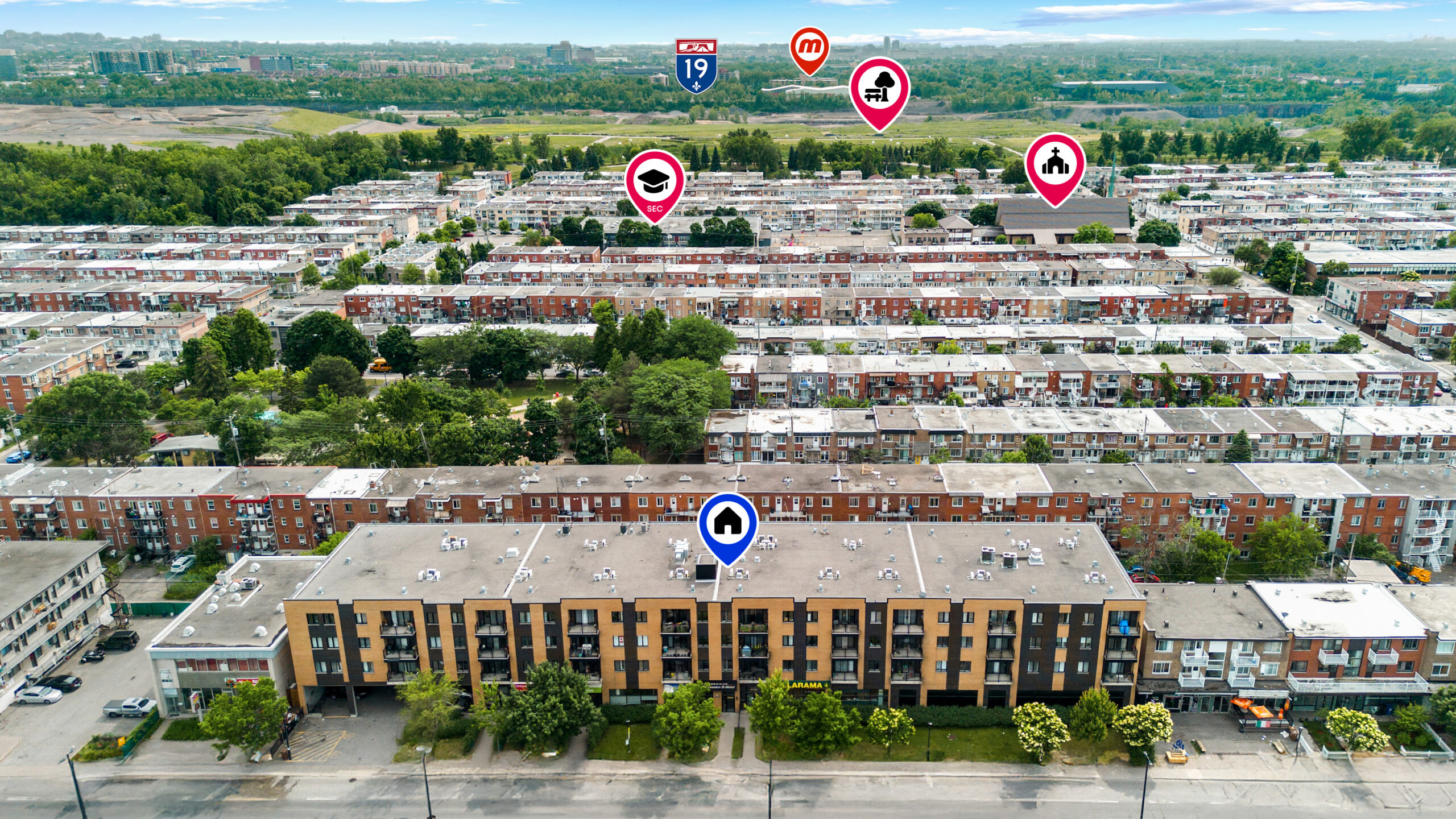 Le secteur Saint-Michel est reconnu pour sa vie de quartier dynamique et familiale. Le condo est stratégiquement situé à proximité de plusieurs écoles, garderies, parcs (dont le parc François-Perrault), pistes cyclables, commerces de quartier, restaurants, transports en commun (autobus, métro Saint-Michel), hôpital, ainsi qu’un accès rapide aux grandes artères comme l’autoroute Métropolitaine. Les Promenades St-Michel, situées à deux pas, offrent une variété de commerces et de services essentiels au quotidien.