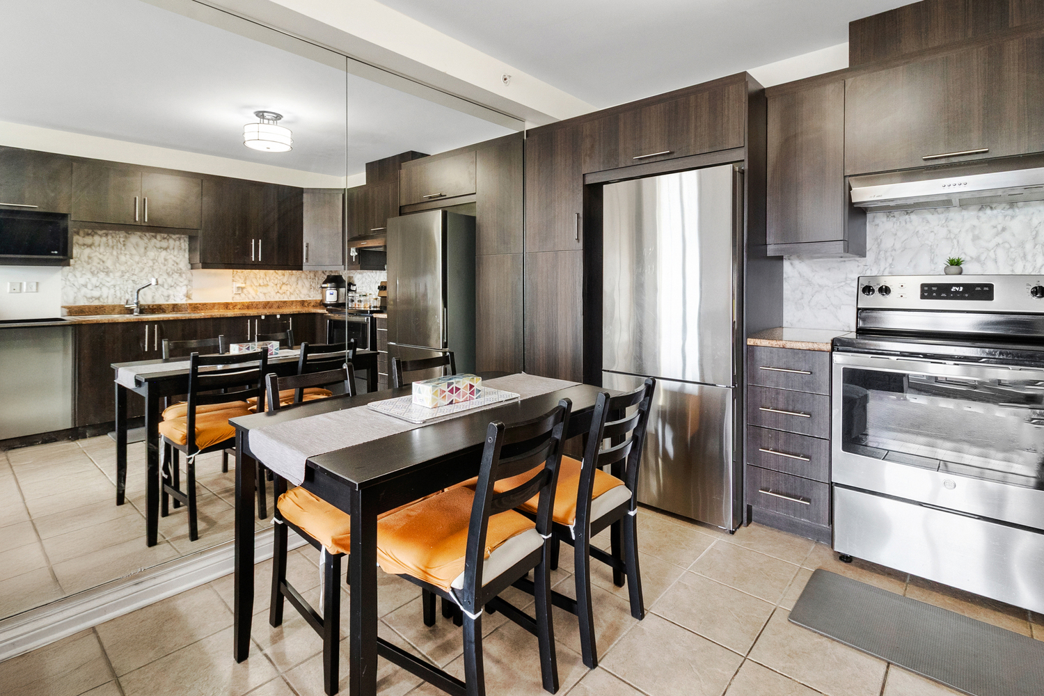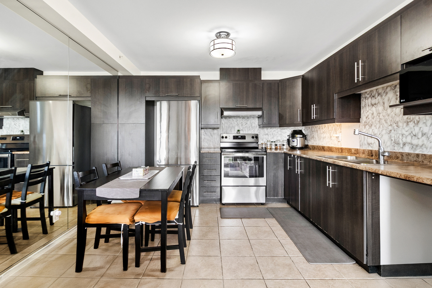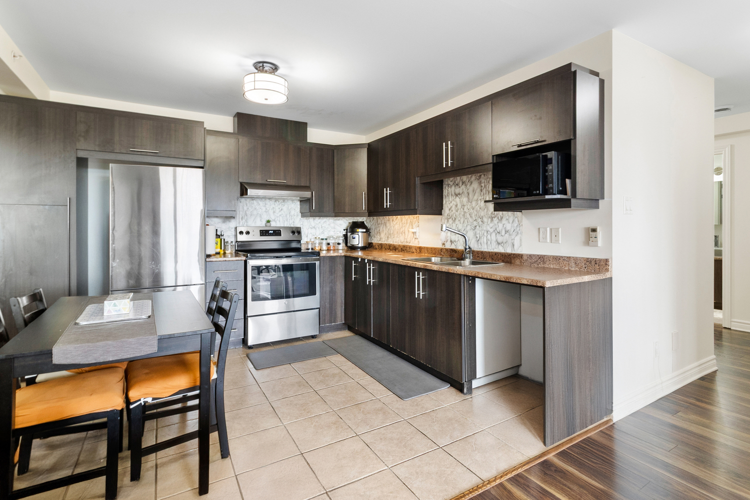 L’unité propose une configuration intelligente à aire ouverte, réunissant cuisine, salle à manger et salon pour un espace de vie fluide et lumineux. La cuisine est fonctionnelle, le balcon est privé, la chambre à coucher est de bonne dimension et une salle de lavage indépendante permet une optimisation parfaite de l’espace